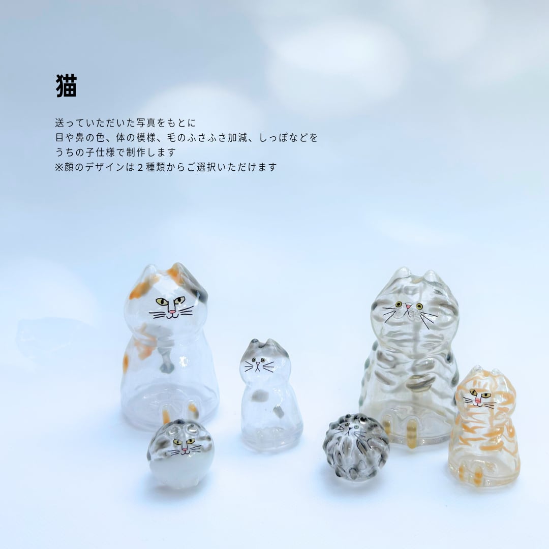 送って頂いた写真をもとに、目や鼻の色、模様、しっぽなどをうちの子仕様で作ります。